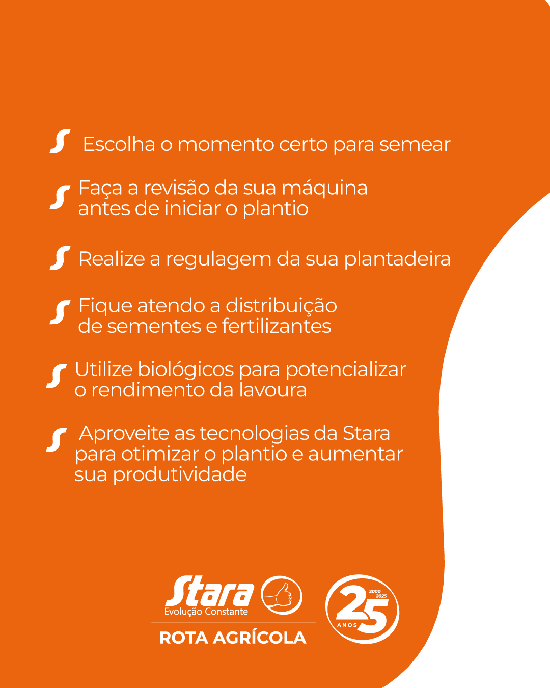 Para garantir um plantio eficiente é necessário ter atenção aos detalhes. Veja algumas dicas objetivas para melhorar a sua produtividade e conte com as tecnologias Stara para garantir o sucesso de mais uma safra. 💪